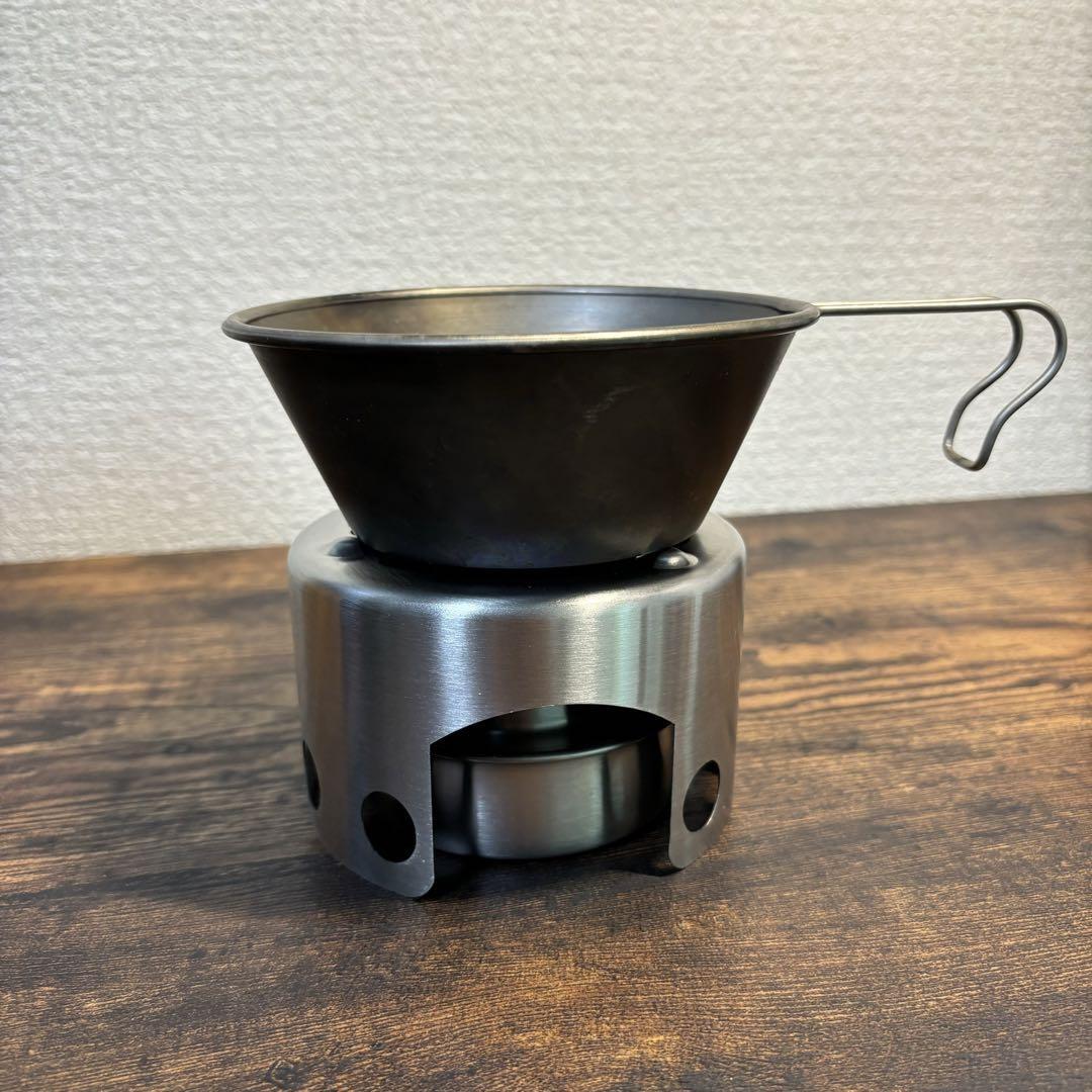 アルコールストーブと五徳(風防)のセットです。