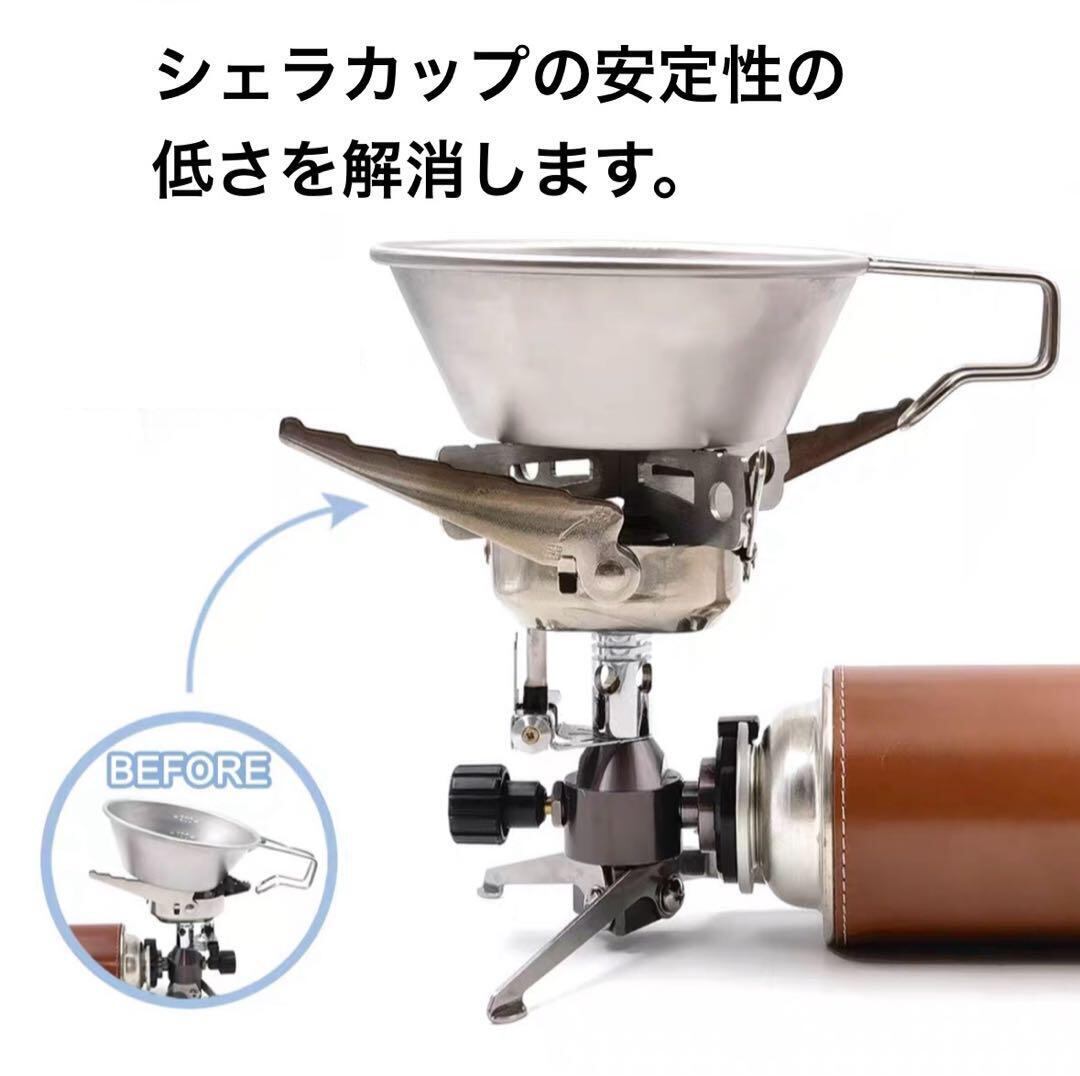バーナー部にセットすることでシェラカップやメスティンやクッカーを乗せた際の安定性の低さを解消できます。