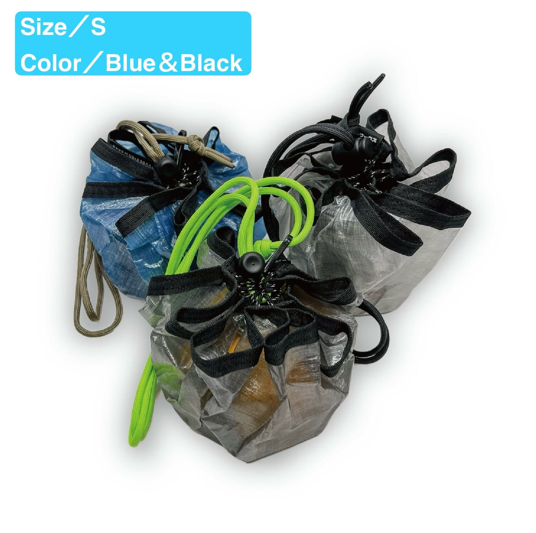 サック 巾着袋 収納袋 ダイニーマ キャンプ 登山 ブルー&ブラック Sサイズ