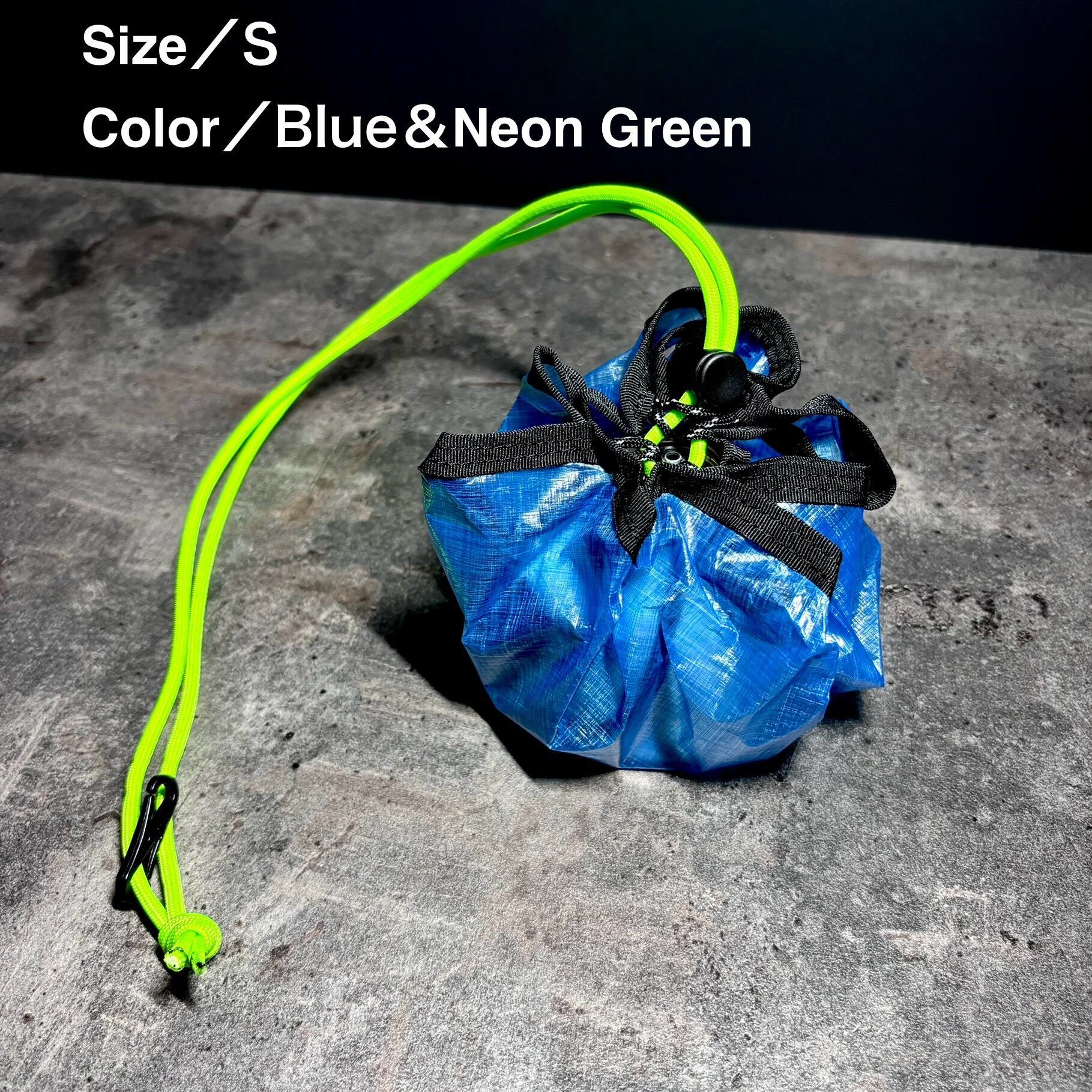サック 巾着袋 収納袋 ダイニーマ キャンプ 登山 ブルー&ネオングリーン Sサイズ