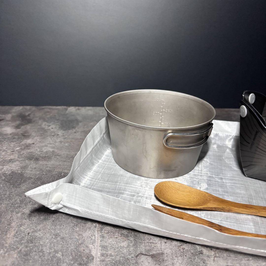 重さは約8gと超軽量&コンパクトに折りたためるので、UL登山やULキャンプでの食器&カトラリートレイや小物置きなどとして活躍します。